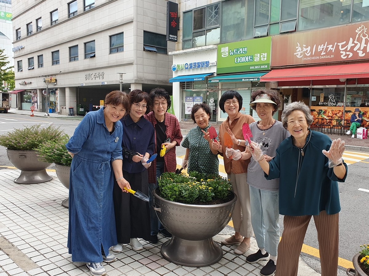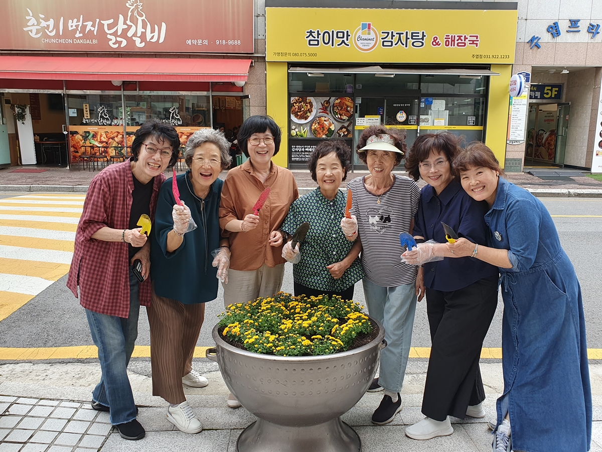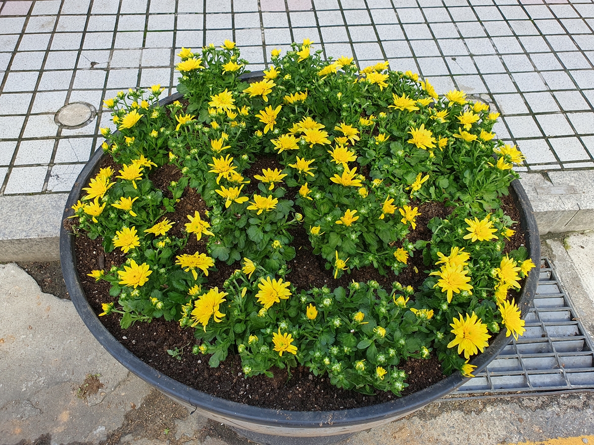 성당 앞 가을국화 심기 (사진:최성지소피아)